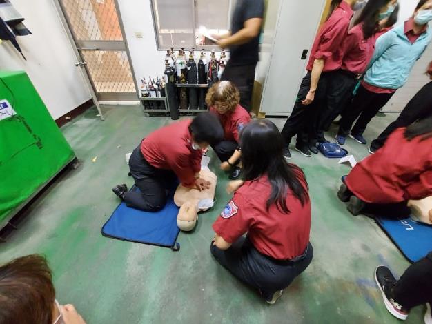 本月訓練巧逢寒流,新聞報導指出因近日氣溫驟降之因素,造成許多民眾因身體無法承受寒流導致死亡,為讓婦宣姊妹了解「急救:生命之鏈-及早CPR與及早電擊」的重要性,故此次訓練從「宣導技巧及重大火災案例簡介」更動為「CPR胸外按摩與AED電擊器指導與實作」,讓婦宣姊妹了解人體在腦部缺氧後4-6分鐘,腦細胞會開始死亡;缺氧10分鐘後便可能腦死,所以第一時間的心臟按壓極其重要,施救者的胸外按摩好比心臟的幫浦,能藉由規律性的按壓,持續將心臟血液打向全身循環,且若搭配使用AED簡易型電擊器並電擊,患者救回的機率甚高。農曆年前之訓練結合餐會,為新營婦宣歲末傳統,各位姊妹使出渾身解數準備自家手路菜一同品嚐,慰勞彼此這一年來的宣導辛勞。